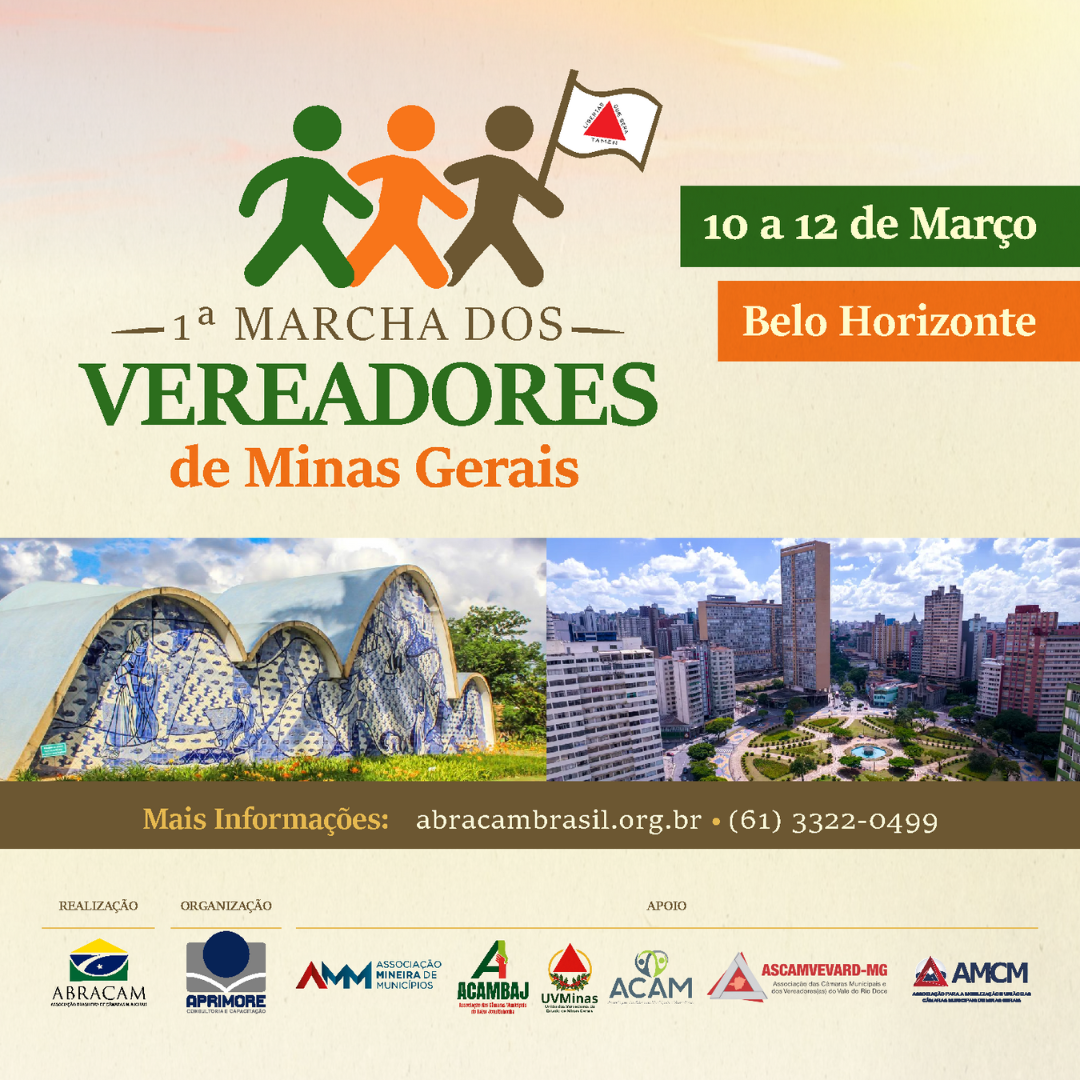 A 1ª Marcha de Vereadores de Minas Gerais é um evento institucional de abrangência estadual que reunirá vereadores, preside...